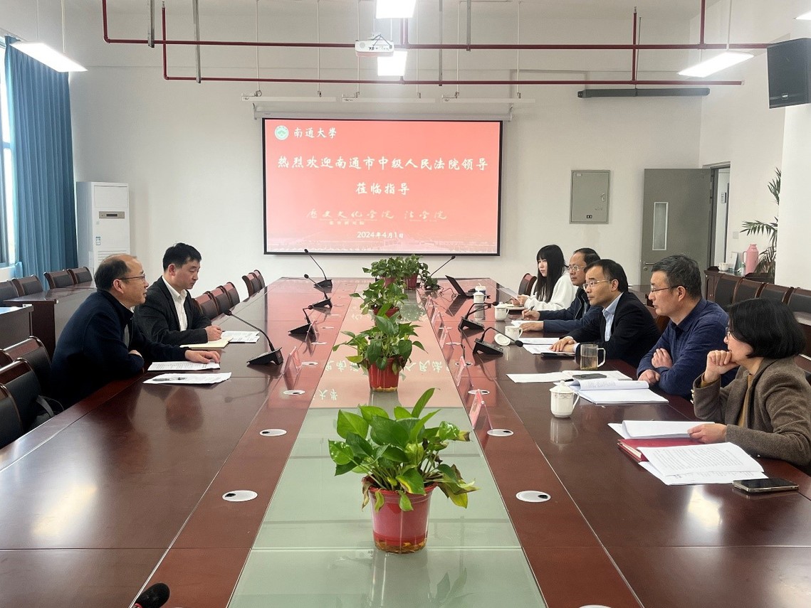 为进一步深化院校交流,推进法治人才联合培养。南通市中级人民法院党组成员、副院长高鸿,南通市中级人民法院审判委员会委员、研究室主任谷昔伟等一行于4月1日到我院进行座谈交流。