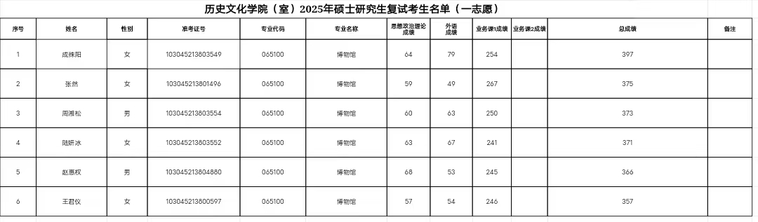 365上市公司(室)2025年硕士研究生复试考生名单(一志愿)