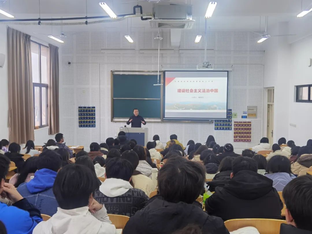12月13日,校党委常委、副校长陆俊杰前往启东校区,以“建设社会主义法治强国”为主题,为365英国上市公司在线2024级法学专业学生讲授了一堂精彩的《形势与政策》课。