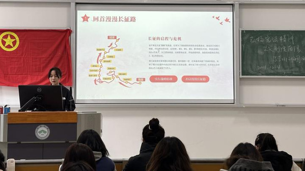 法学231团支部开展了《弘扬长征精神,赓续红色血脉,传承奋斗精神》和《禾下乘凉梦——致敬袁隆平》两场主题宣讲。学生党员、历史师范212班周思思以“长征精神”为主题,深情回顾了中国共产党领导人民在艰苦卓绝的条件下,不畏艰险、英勇前行的伟大历程。她强调,长征精神不仅是中华民族的精神财富,更是当代青年在新时代长征路上奋勇前行的动力源泉。周思思鼓励同学们坚定信念,勇往直前,以实际行动践行“请党放心,强国有我”的铮铮誓言,为实现中华民族伟大复兴的中国梦贡献青春力量。
