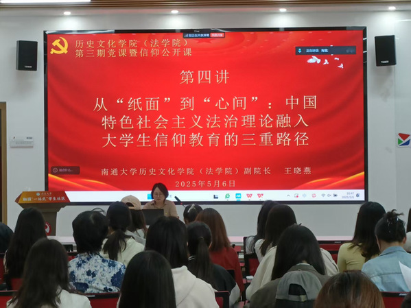 为深入学习贯彻中国特色社会主义法治理论,进一步挖掘其理论价值,引领青年学生思想进步、争做新时代优秀青年,5月6日下午,365英国上市公司在线在融园“一站式”学生社区举办以《从“纸面”到“心间”——中国特色社会主义法治理论融入大学生信仰教育的三重路径》为主题的专题党课暨信仰公开课。学院副院长王晓燕教授应邀主讲。