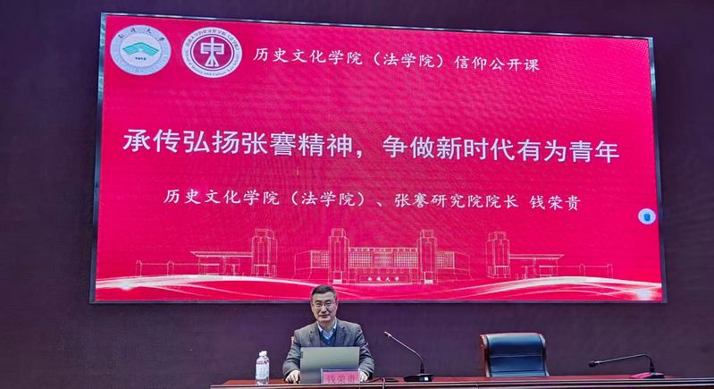 钱荣贵以党和国家领导人对张謇的高度评价为切入点,明确其作为中国近代杰出实业家、教育家与社会改革家的历史地位,指出其精神与事业“如丰碑启示当代,似星辰照亮青年前路”。他借助丰富史料与生动叙述,带领同学们回溯张謇所处的“三千年未有之大变局”时代,细致讲述了张謇寒窗苦读二十余载、42岁中状元后弃官从商,毅然走上“实业救国”之路的传奇经历。