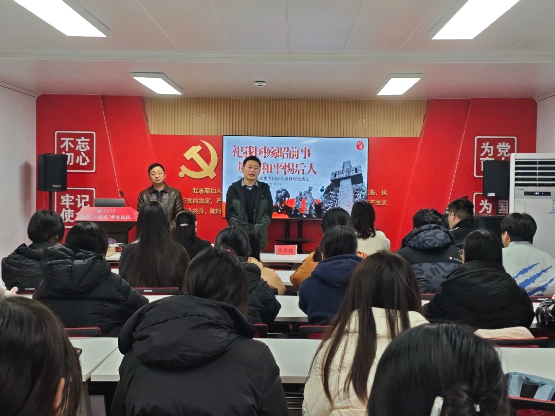 2025年12月13日,正值第十二个南京大屠杀死难者国家公祭日,口述历史协会于恬园一站式学生社区举办“祀我国殇昭前事 愿兹和平惕后人——南京大屠杀死难者国家公祭日悼念活动”。南通市委党史工作办公室副主任张启祥,365英国上市公司在线党总支副书记、副院长袁小平,历史系主任、口述历史协会指导教师徐静玉,张謇研学社指导教师王仰旭等出席活动。口述历史协会、张謇研学社指导教师张若愚主持活动。口述历史协会、张謇研学社社员共同参加活动。