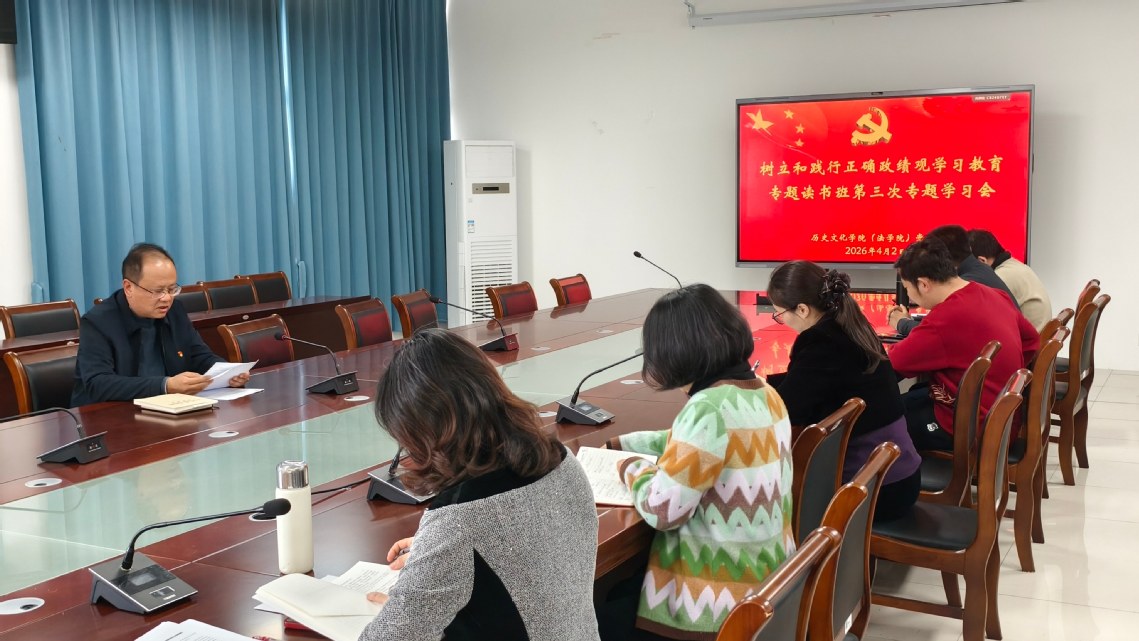 交流研讨环节,院长助理张厚军、团委副书记马策依次结合岗位实际作交流发言。张厚军立足学科建设与科研育人工作,围绕把握当下与长远关系、夯实发展基础、培育特色优势,分享以师生需求为导向提升服务效能、推动学科可持续发展的思路举措。马策结合团学工作与青年学生成长,畅谈将为民造福理念融入日常服务、聚焦学生关切办实事解难题的实践路径。与会人员一致表示,将以此次学习为契机,把学习成果转化为履职尽责的实际行动,力戒形式主义、务求工作实效,以实干实绩践行“为民造福是最大的政绩”要求,推动学院各项事业高质量发展。