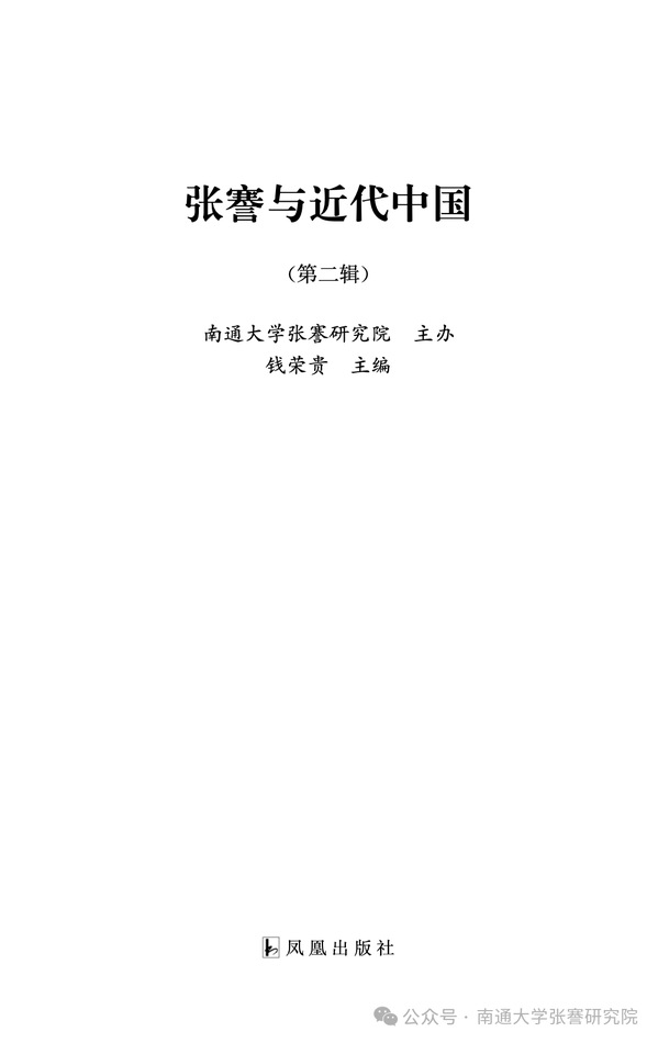 近日,365上市公司张謇研究院主办、钱荣贵主编、张厚军执行主编的《张謇与近代中国》第二辑,由凤凰出版社正式出版发行。该辑设有张謇癸卯东游研究、张謇与经济、张謇与法治、张謇与社会、张謇与文化、近代人物研究、文史考辨等专题,共收录论文20篇。