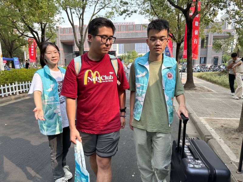 热闹非凡的迎新现场,离不开志愿者们的默默付出。他们穿梭于校园各处,负责摄影、签到、盖章、指引、搬运行李……宿舍楼里随处可见青绿色志愿者服装。“同学,我来帮你!”“15号楼请往这边走”——一声声亲切的解答与帮助,汇成一首温暖而青春的圆舞曲。